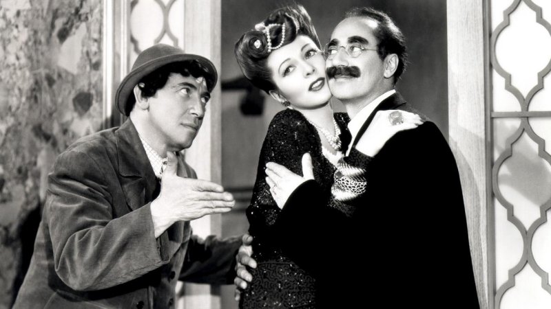 Etiquetas: EE.UU. • Comedia • Archie L. Mayo • Sig Ruman • Charles Drake • Estreno/1949 • Groucho Marx • Chico Marx • Harpo Marx • Lois Collier