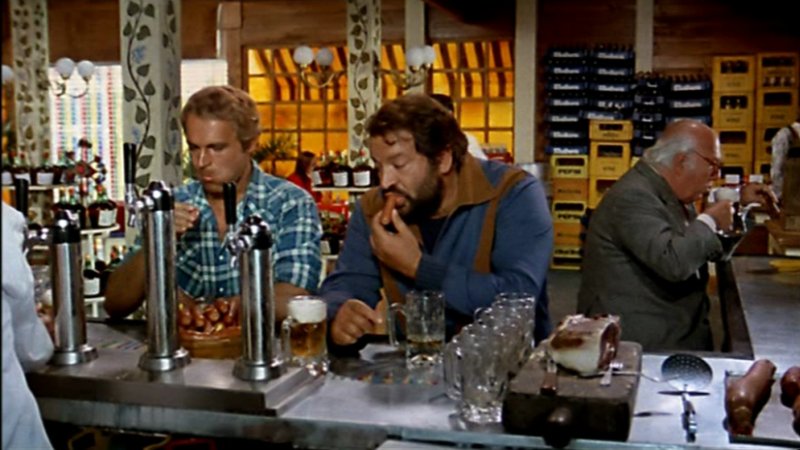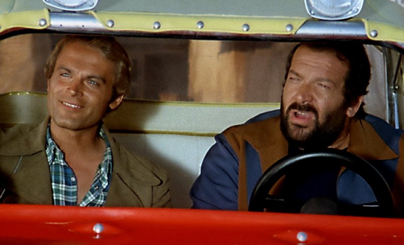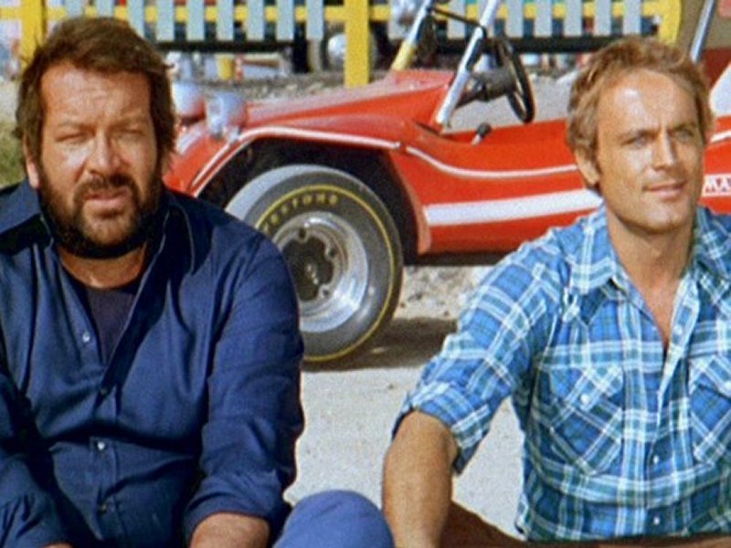 Kid y Ben, amigos pero rivales, participan en una carrera de coches cuyo premio es un estupendo "dune-buggy", un minibólido rojo con capota amarilla. Después de innumerables peripecias, Kid y Ben llegan juntos a la meta, por lo que el minibólido les pertenece a los dos. Kid propone que se lo jueguen a "cervezas y salchichas"...