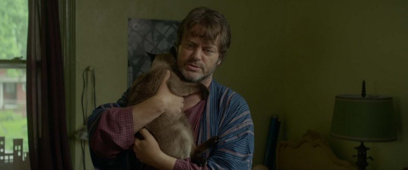 Reunir las prendas de Nick Offerman fue una pura diversión, dice la diseñadora. “Al padre de Greg le encanta viajar y está interesado en la cultura mundial. Cada conjunto que tiene es único y lleno de toques étnicos mundiales. El desafío era coger un caftán que consiguió en Marruecos y conjuntarlo con su viejo y cómodo albornoz y sus zuecos, y lograr que no pareciera de broma”.