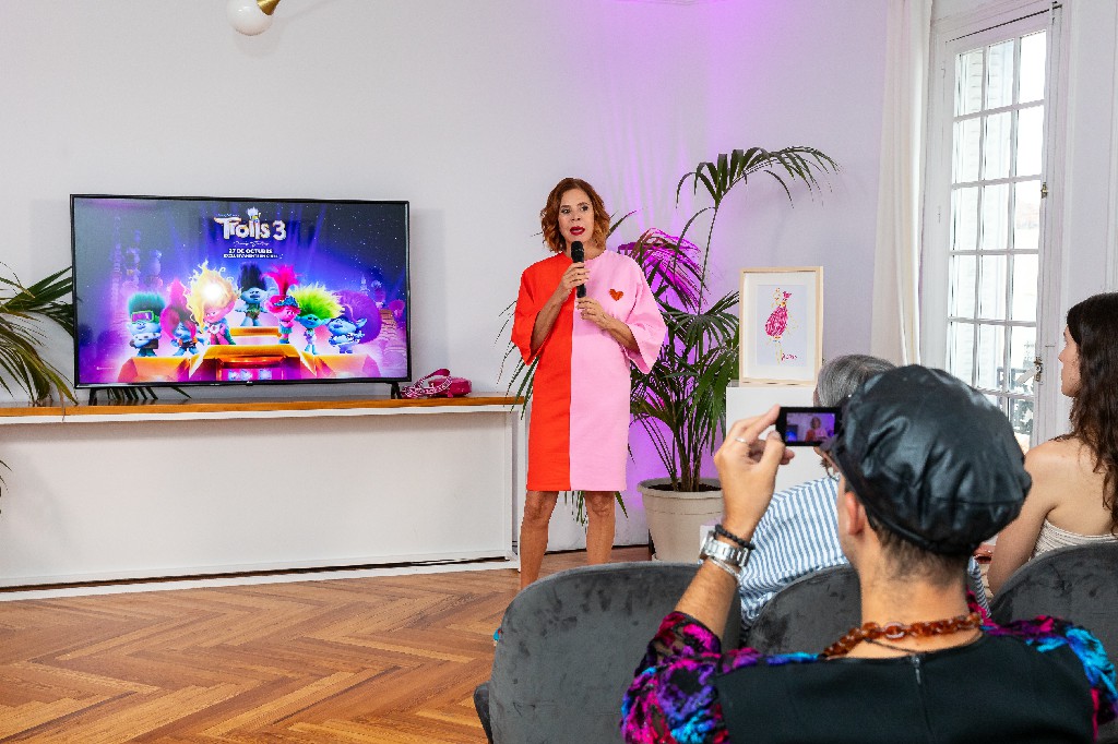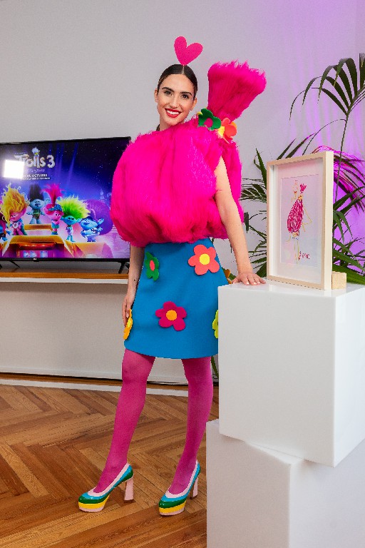 Durante el acto de presentación, Agatha Ruiz de la Prada ha explicado a la prensa el proceso creativo del vestido y cuál ha sido la inspiración que le ha ofrecido la película a la hora de crear un diseño inédito inspirado en Poppy, la mayor representante femenina del mundo de los trolls.